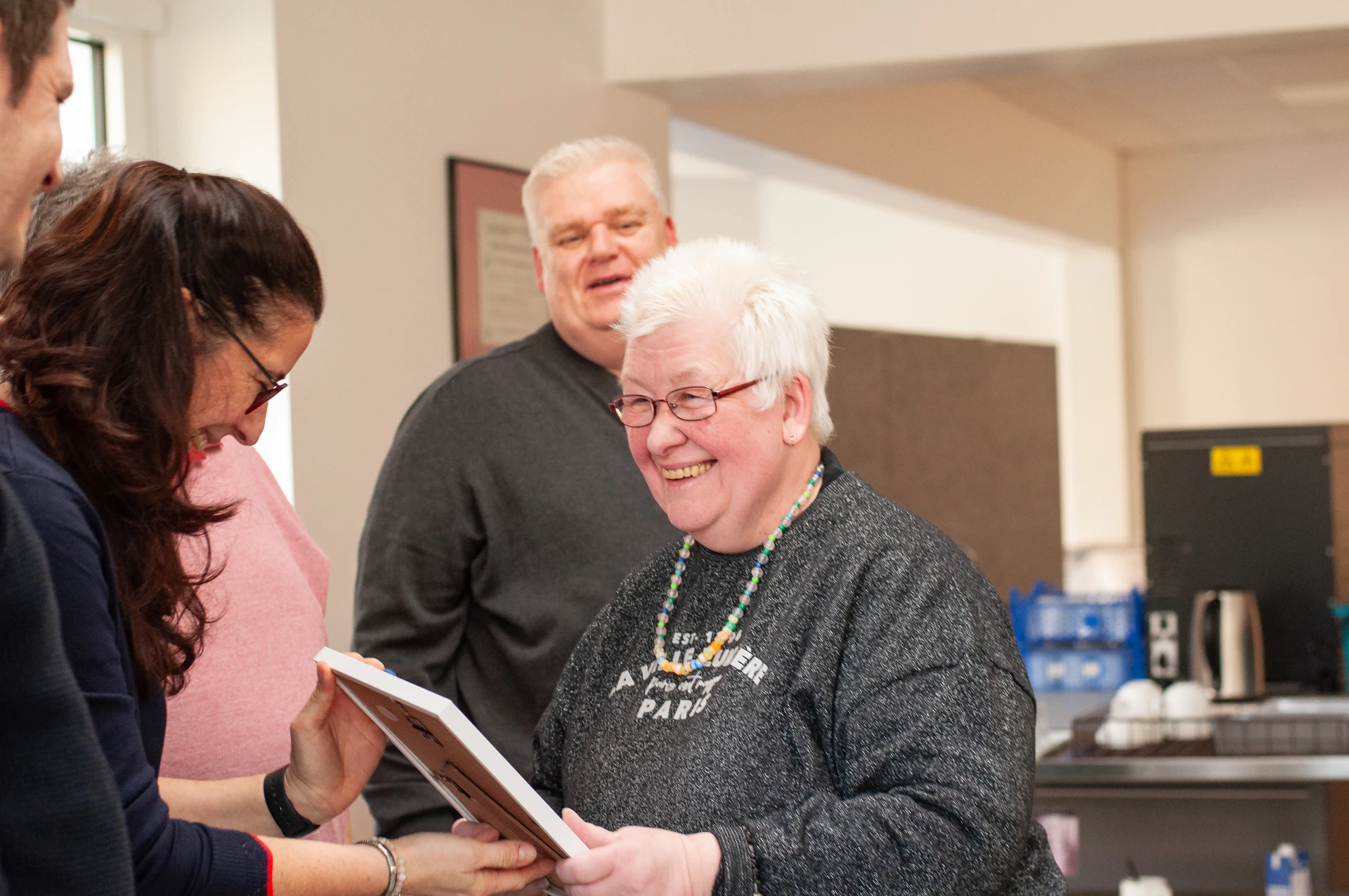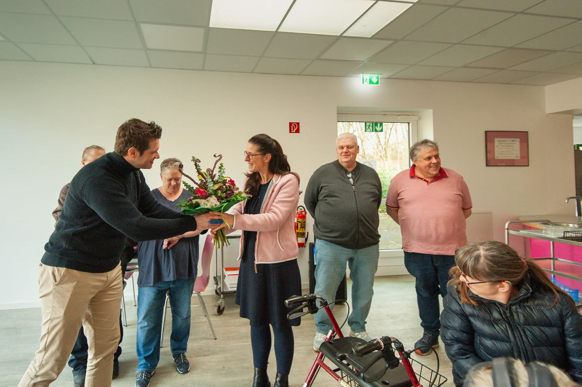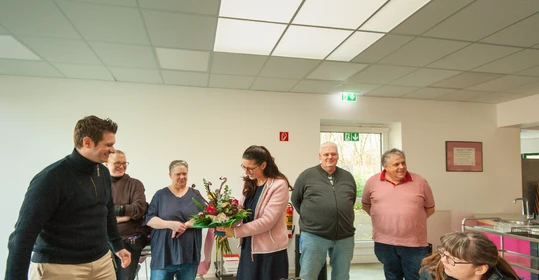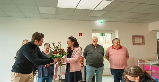 Bei einer gemütlichen Feier mit Kaffee und Kuchen hat die Werkstatt Constantin-Bewatt 48 Beschäftigte und acht Mitarbeitende ausgezeichnet, die in diesem Jahr ein Dienstjubiläum feiern konnten. Werkstattleitung Birgit Westphal, Stellvertreter Marcel Paulner, Jörg Weiß und Udo Albers von der Mitarbeitendenvertretung sowie Andrea Neuhäuser und Daniela Müller-Bonin vom Werkstattrat gratulierten den Jubilarinnen und Jubilaren und überreichten ihnen ihre Urkunden. Birgit Westphal erhielt selbst ebenfalls einen Blumenstrauß: Am Vortag konnte sie einen runden Geburtstag feiern.