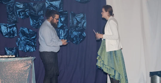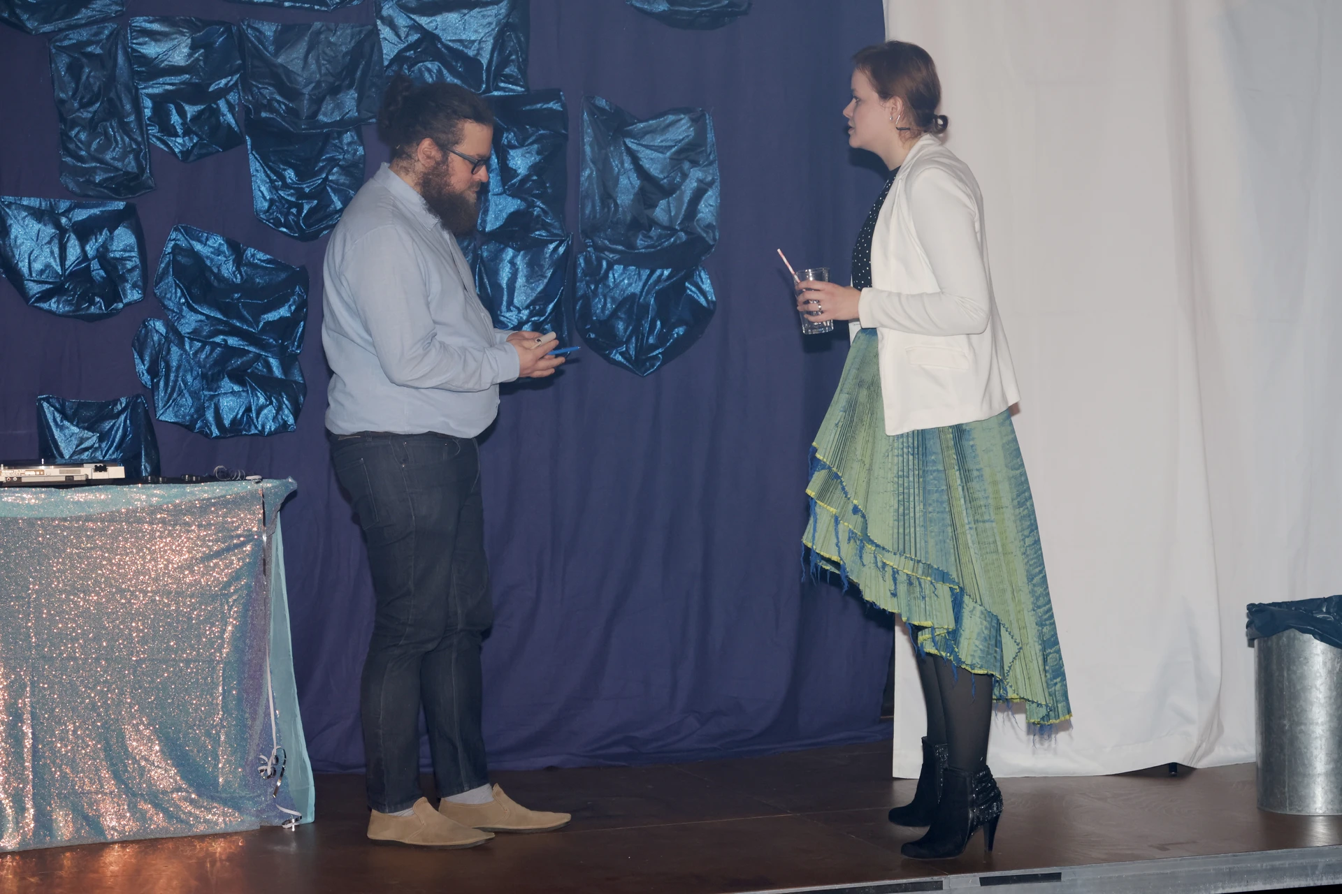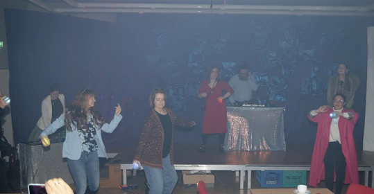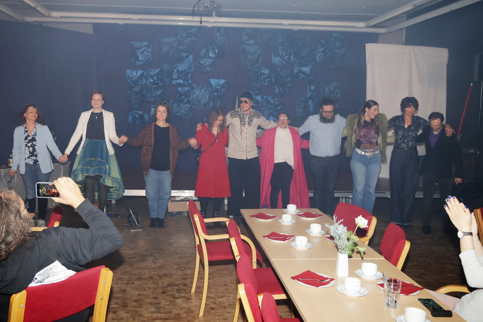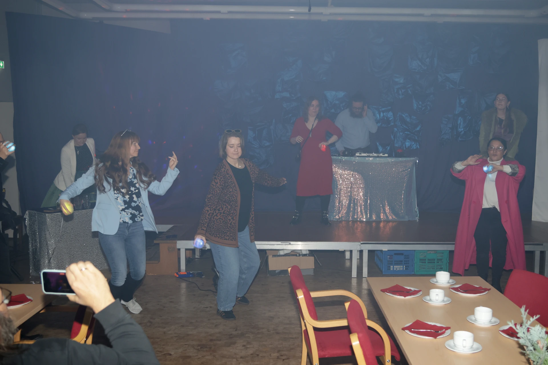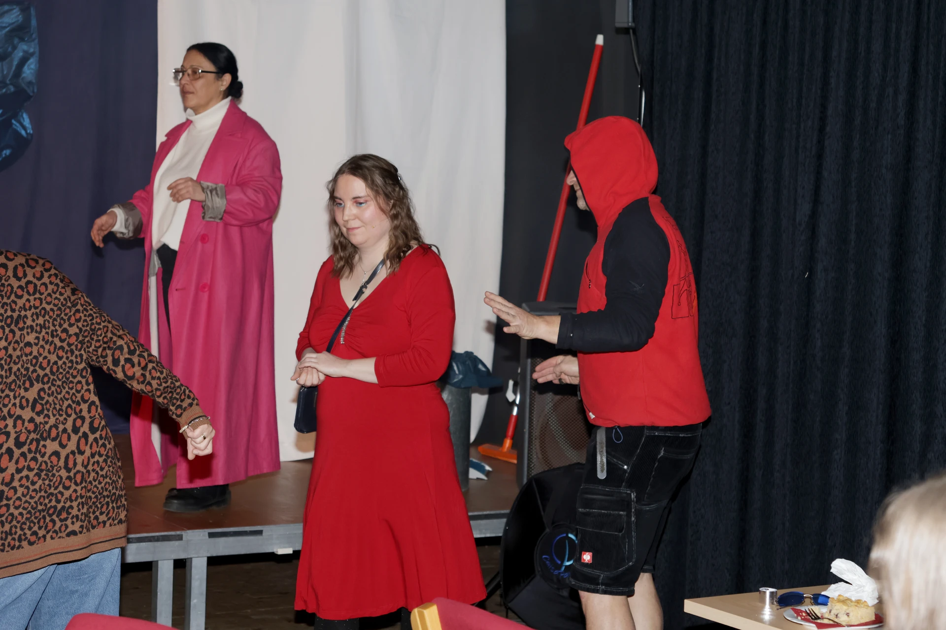 Vor einem begeisterten Publikum hat das Stück „Magic Disco“ des Ensembles Drama & Glitzer im Haus der Begegnung Premiere gefeiert. Den mitreißenden Dancefloor-Krimi um Diebstahl und Entführung in einem Nachtclub hatten rund zehn Besucherinnen und Besucher der Tagesstätte für Menschen mit einer psychischen Erkrankung der Diakonie Ruhr in einem Theaterprojekt erarbeitet. Unter Anleitung der Theaterpädagogin Britta Lennardt vom BrilLe Theater Witten haben sie seit Frühjahr 2025 in 20 wöchentlichen Treffen Spielszenen entwickelt und dabei eigene Ideen und Emotionen aktiv eingebracht. Dafür ernteten sie nun verdienten Applaus.