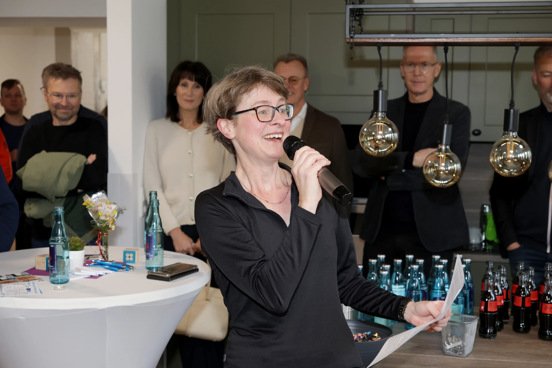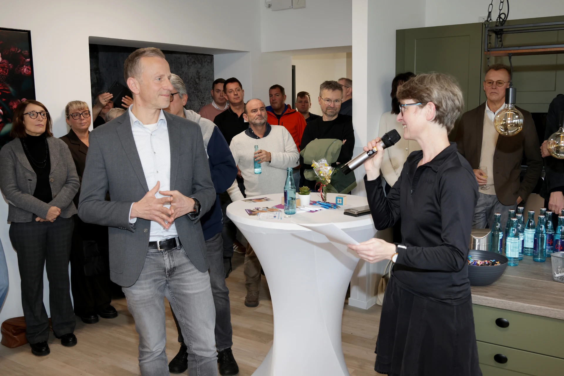 Die gemütliche Einrichtung im modernen Landhausstil strahlt Wärme und Geborgenheit aus – ein Ort zum Wohlfühlen und Entspannen. Den Gästen stehen unter anderem ein lichtdurchfluteter Aufenthalts- und Speisebereich mit schöner Aussicht, ein gemütliches Kaminzimmer, ein Ruheraum mit Schlafliegen und eine Terrasse zur Verfügung. Die Einrichtung punktet zudem mit ihrer zentralen, aber dennoch ruhigen Lage sowie einer hervorragenden Anbindung an den öffentlichen Nahverkehr. Im selben Gebäude ist künftig auch die APd Ambulante Pflegedienste GmbH zu finden, die seit Mai 2025 zur Diakonie-Ruhr-Familie gehört. Sie ist derzeit noch im Gesundheitshaus Kemnade an der Kemnader Straße 318 angesiedelt und wechselt demnächst die Straßenseite. „Hier ist ein Ort der Begegnung entstanden“, sagte Christine Böhrer, Pfarrerin der Ev. Kirchengemeinde Bochum-Stiepel, in ihrem geistlichen Impuls.