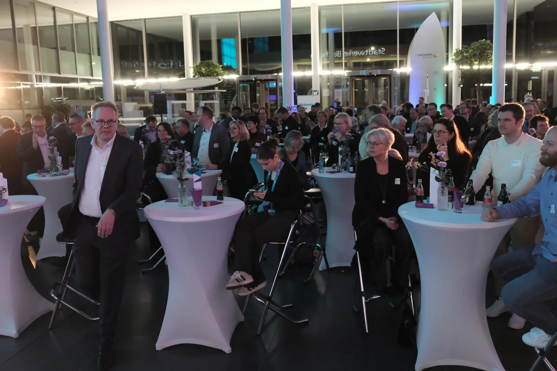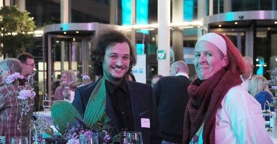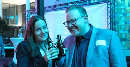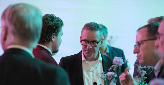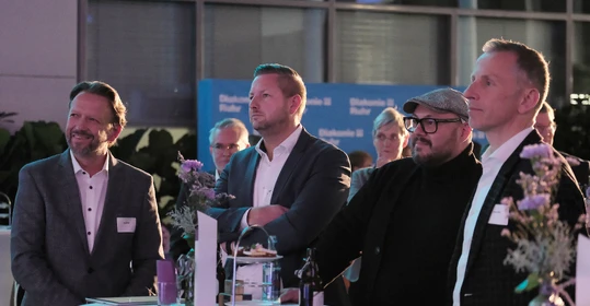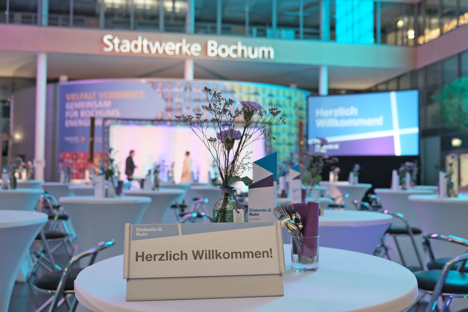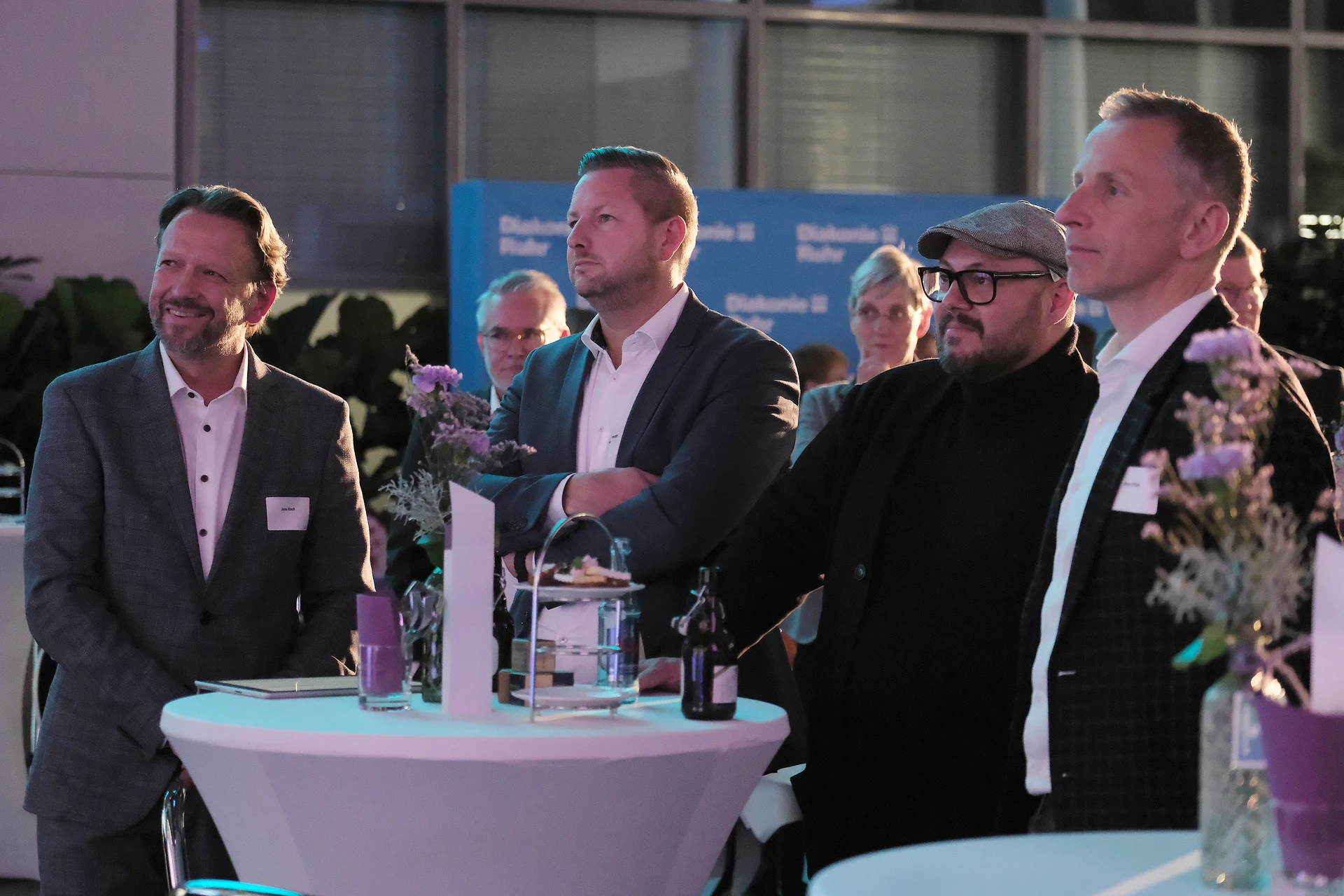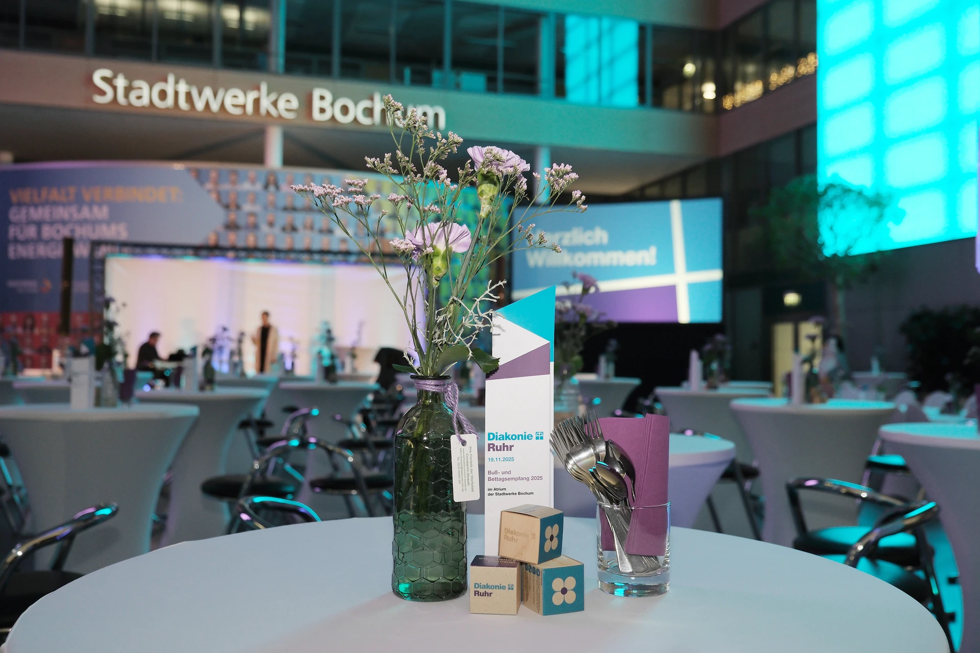 Neben dem Programm auf der Bühne standen Begegnung, Vernetzung und Austausch im Zentrum des agilen Stehempfangs mit mobilem Büfett statt festlich eingedeckter Tische. Die Gäste nutzten fleißig die Gelegenheit zu anregenden Gesprächen. Bei der Schätzfrage, bei der alle Anwesenden tippen konnten, wie viel Kilo Kaffee 2024 über die Catering-Tochter Culina Ruhr bestellt wurden, war Christian Gast mit 7650 Kilo am nächsten dran. 7537 Kilo wäre die richtige Antwort gewesen. Dafür liefert ihm die Floristikabteilung der Werkstatt Constantin-Bewatt ein halbes Jahr lang jede Woche einen Blumenstrauß nach Hause. Mit dem Gewinn will Christian Gast seinen künftigen Ehemann beglücken.