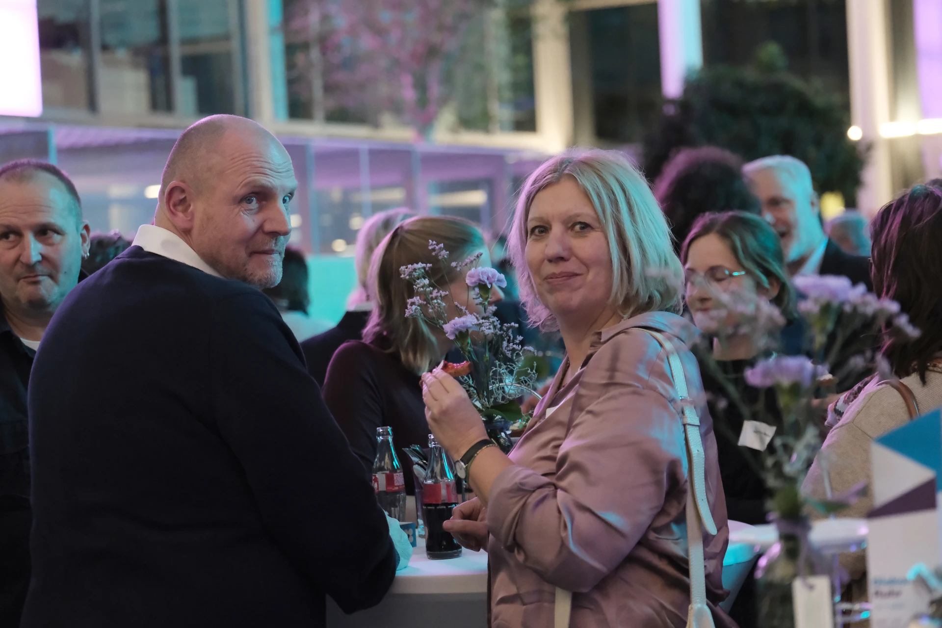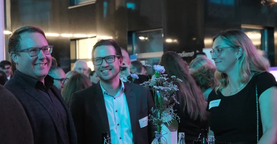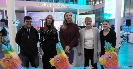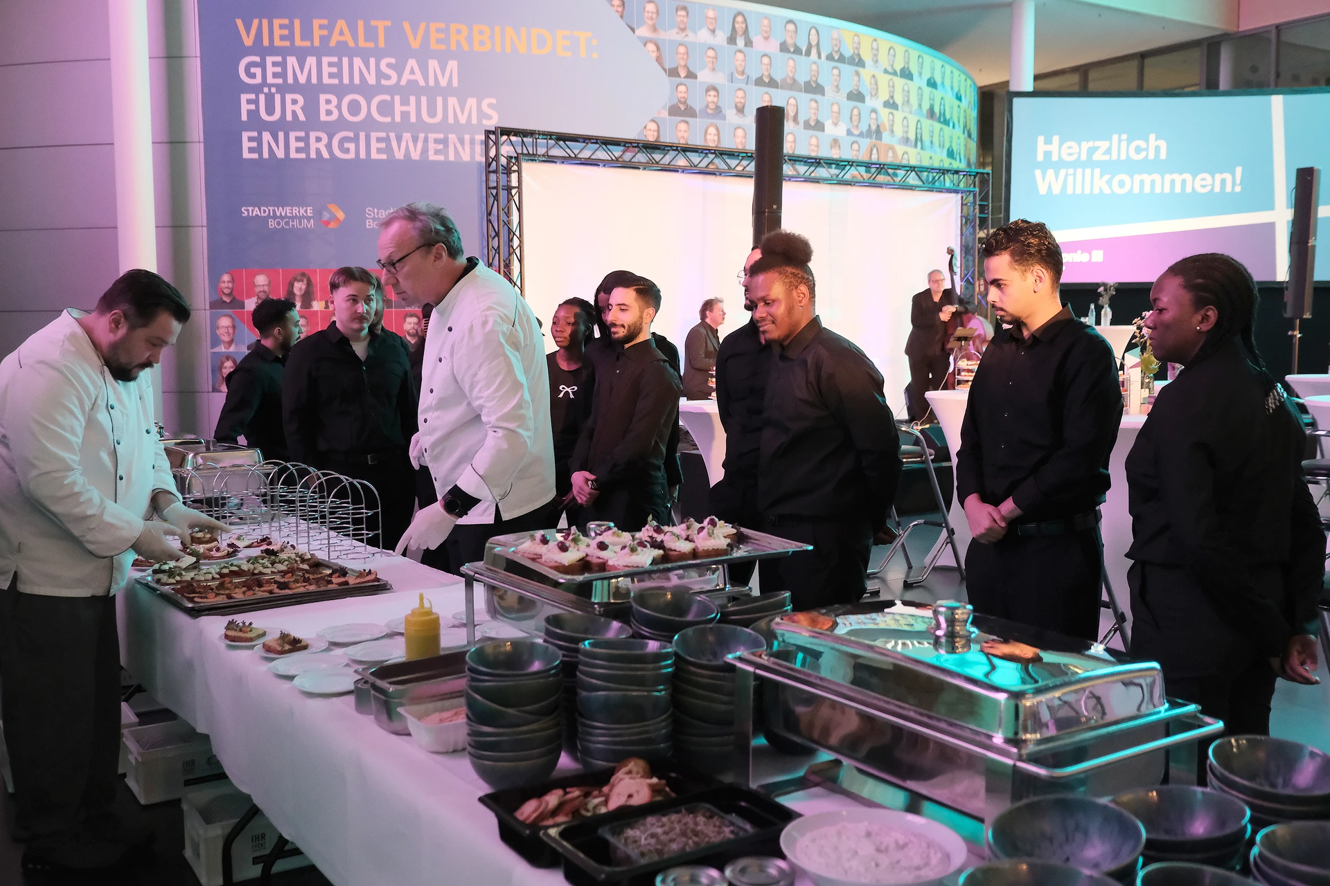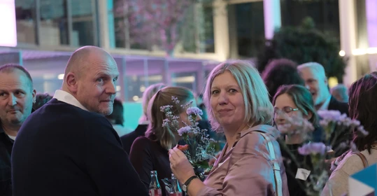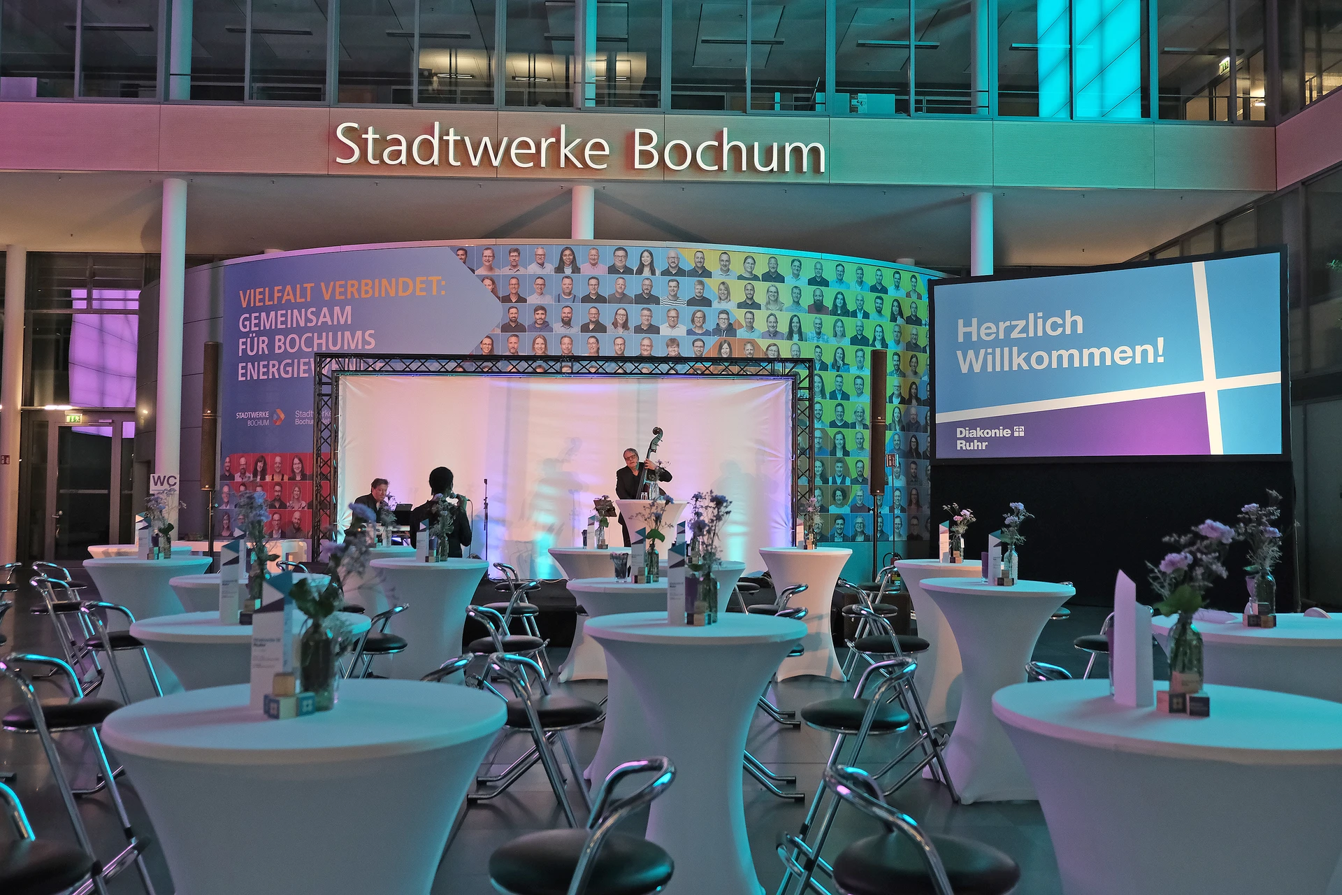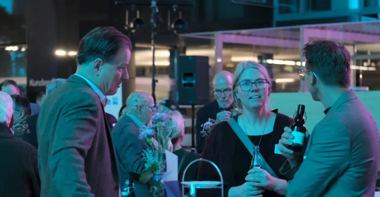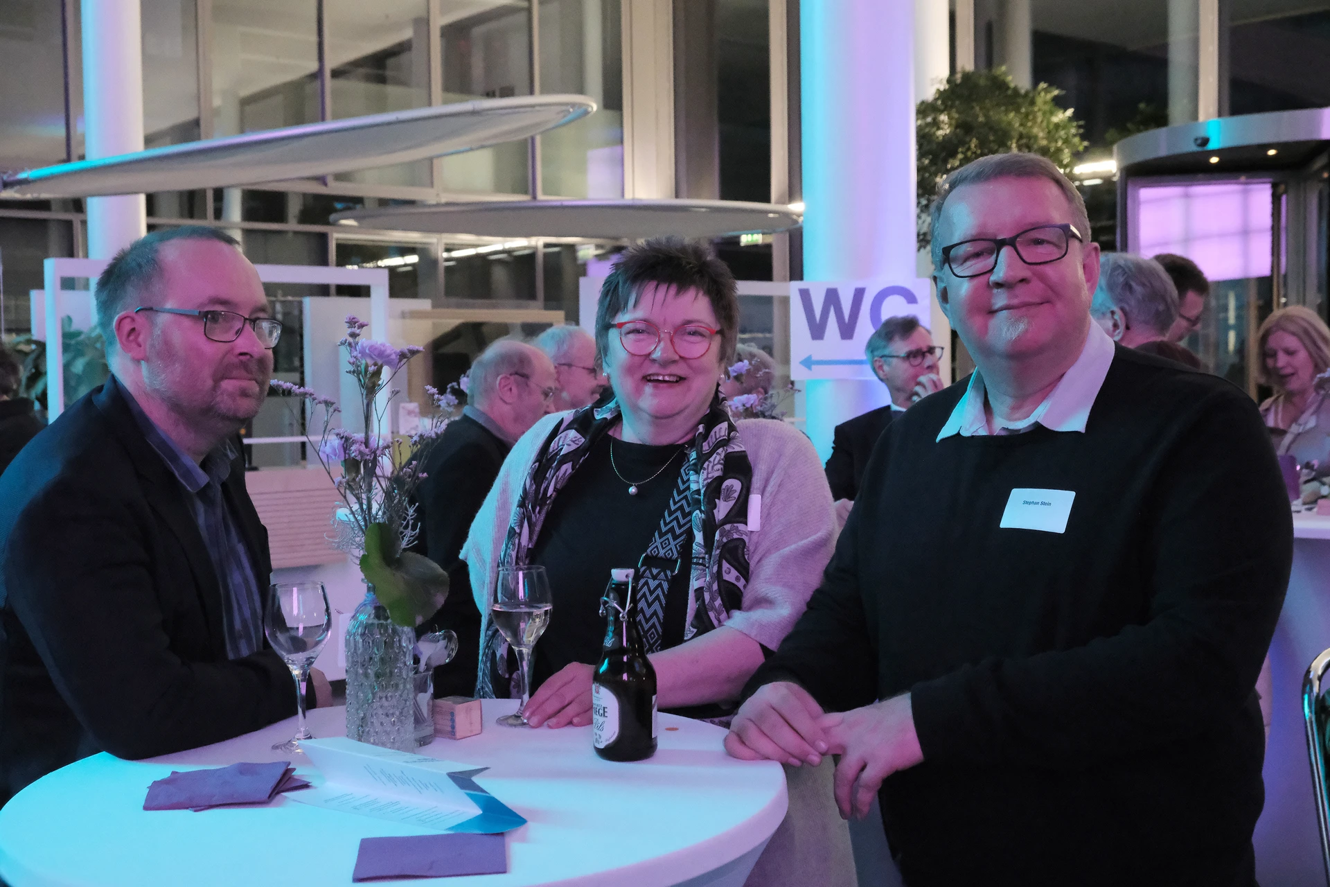 Neben dem Programm auf der Bühne standen Begegnung, Vernetzung und Austausch im Zentrum des agilen Stehempfangs mit mobilem Büfett statt festlich eingedeckter Tische. Die Gäste nutzten fleißig die Gelegenheit zu anregenden Gesprächen. Bei der Schätzfrage, bei der alle Anwesenden tippen konnten, wie viel Kilo Kaffee 2024 über die Catering-Tochter Culina Ruhr bestellt wurden, war Christian Gast mit 7650 Kilo am nächsten dran. 7537 Kilo wäre die richtige Antwort gewesen. Dafür liefert ihm die Floristikabteilung der Werkstatt Constantin-Bewatt ein halbes Jahr lang jede Woche einen Blumenstrauß nach Hause. Mit dem Gewinn will Christian Gast seinen künftigen Ehemann beglücken.