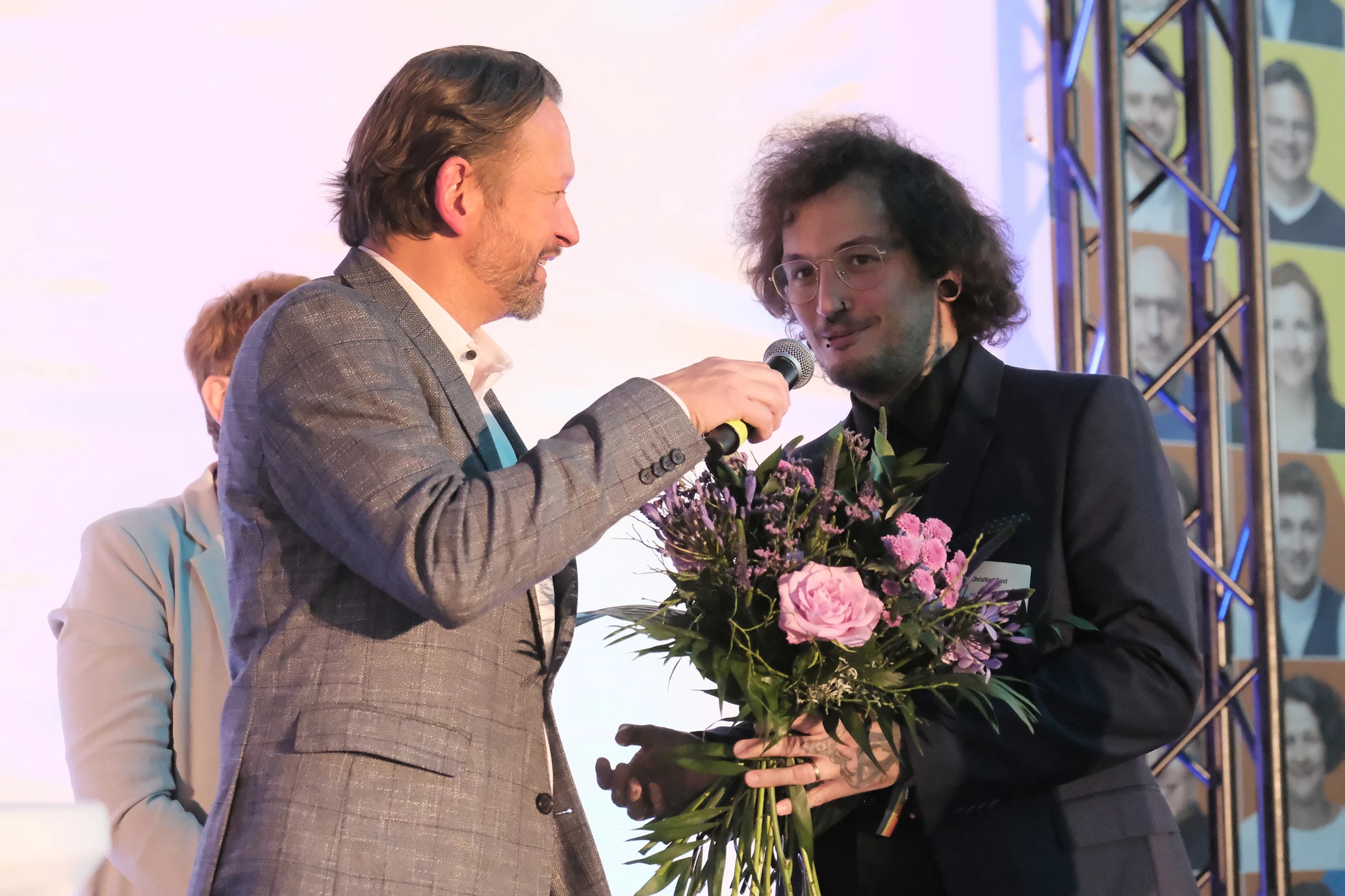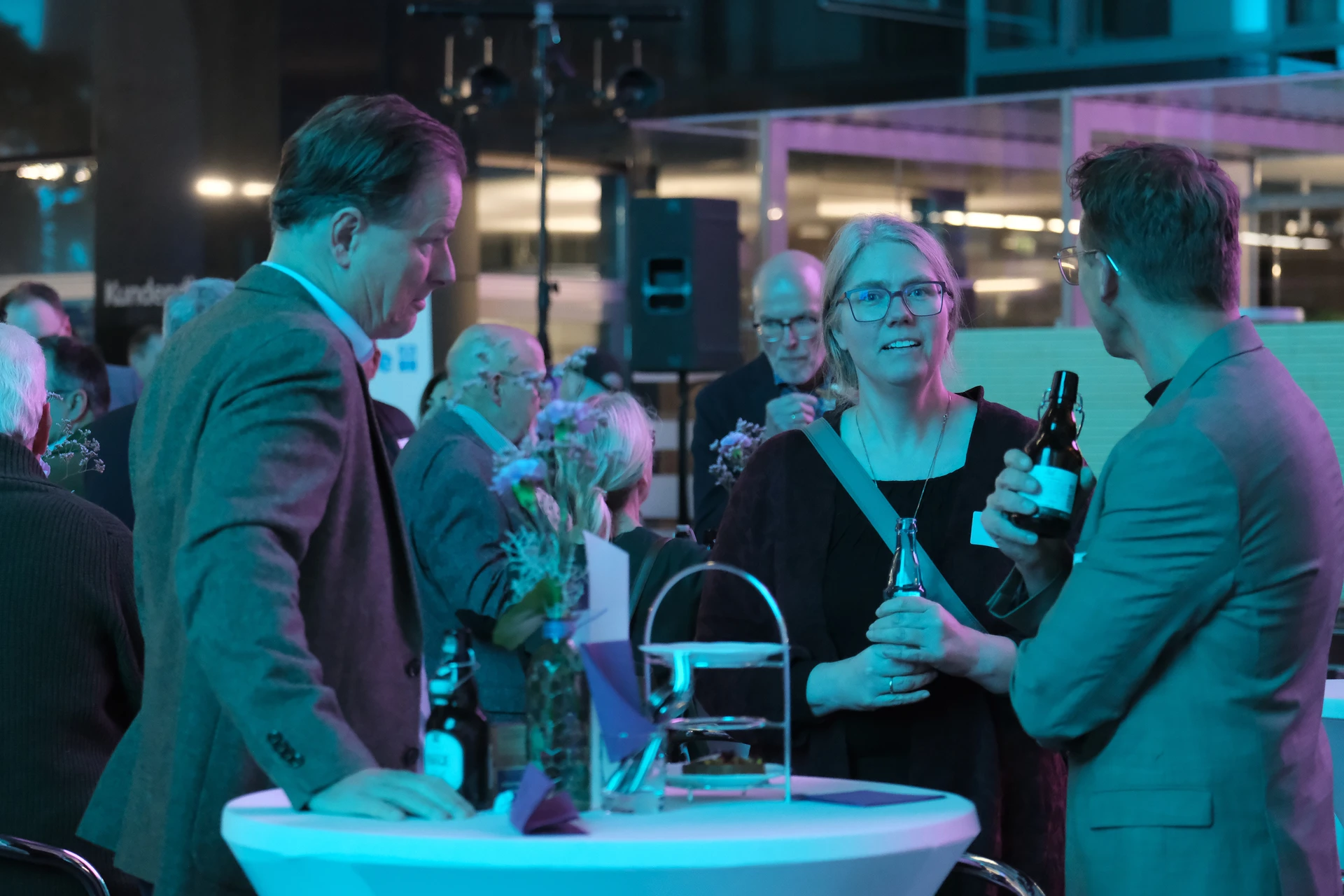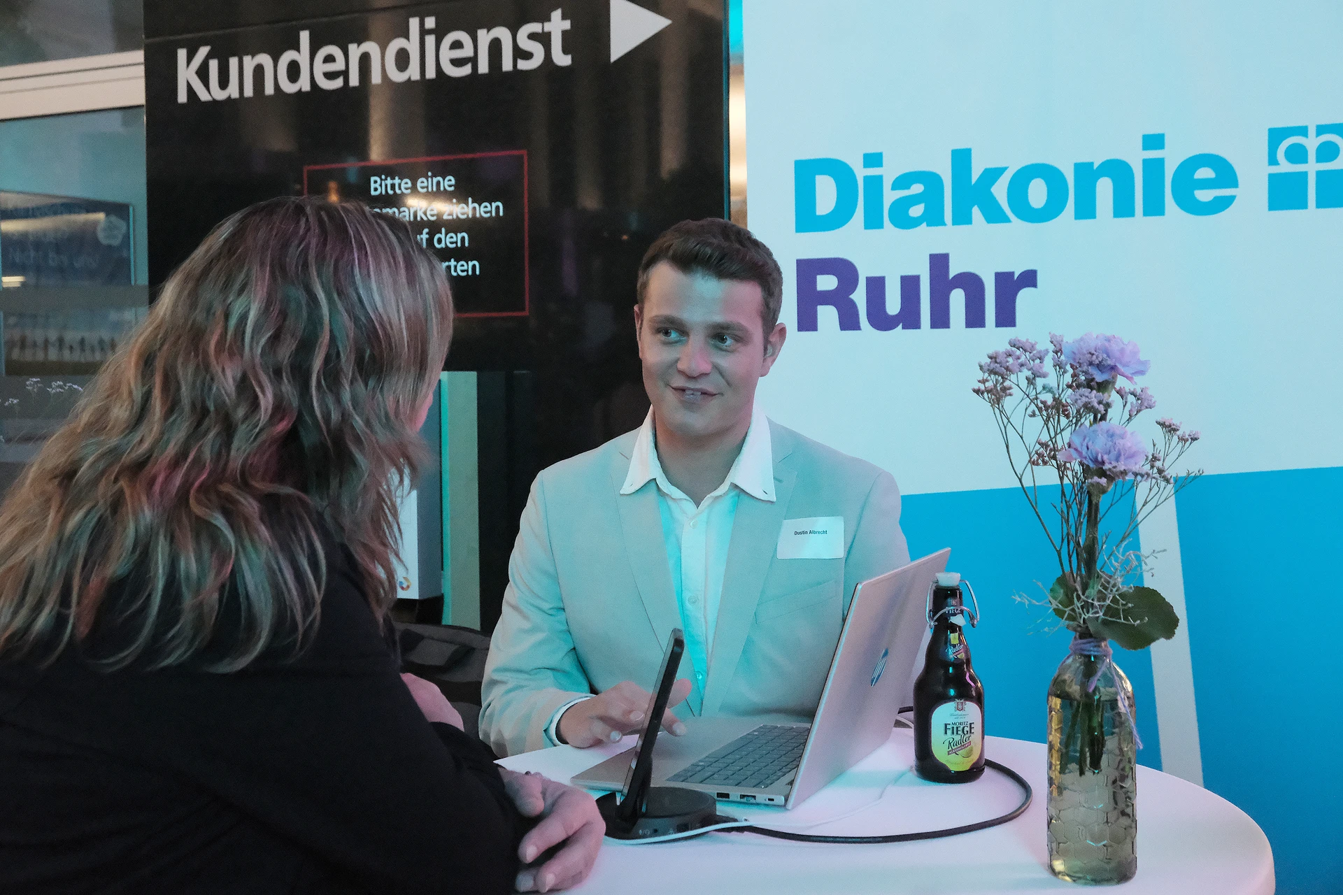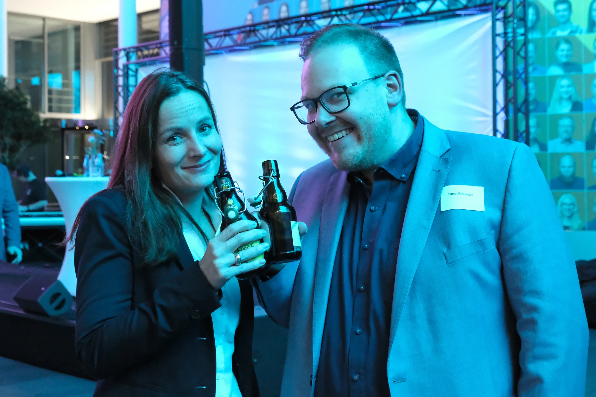 Neben dem Programm auf der Bühne standen Begegnung, Vernetzung und Austausch im Zentrum des agilen Stehempfangs mit mobilem Büfett statt festlich eingedeckter Tische. Die Gäste nutzten fleißig die Gelegenheit zu anregenden Gesprächen. Bei der Schätzfrage, bei der alle Anwesenden tippen konnten, wie viel Kilo Kaffee 2024 über die Catering-Tochter Culina Ruhr bestellt wurden, war Christian Gast mit 7650 Kilo am nächsten dran. 7537 Kilo wäre die richtige Antwort gewesen. Dafür liefert ihm die Floristikabteilung der Werkstatt Constantin-Bewatt ein halbes Jahr lang jede Woche einen Blumenstrauß nach Hause. Mit dem Gewinn will Christian Gast seinen künftigen Ehemann beglücken.