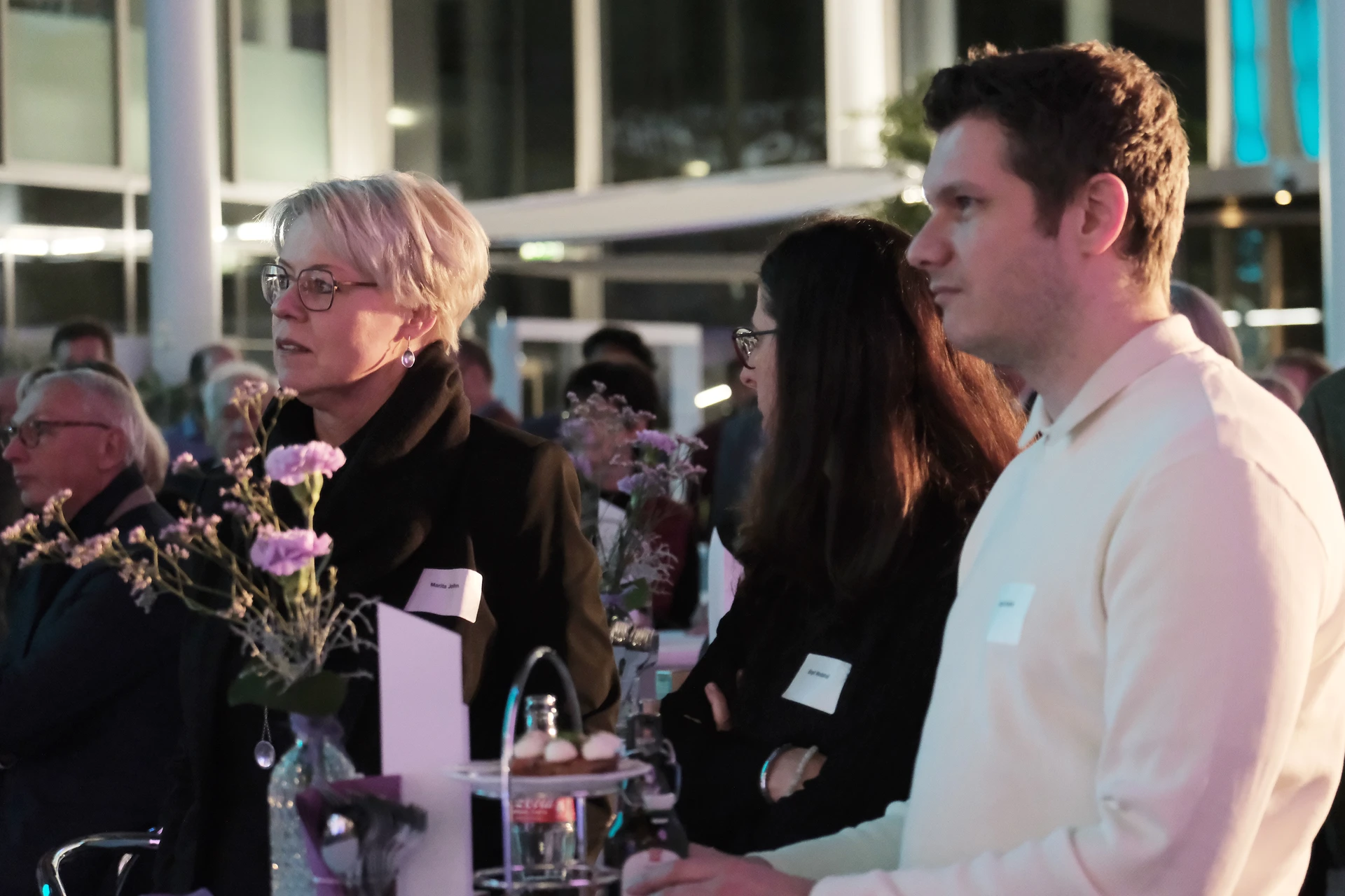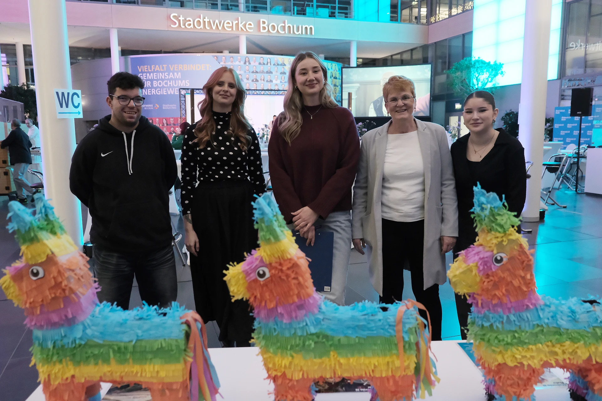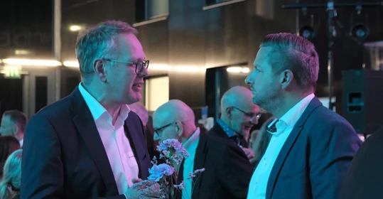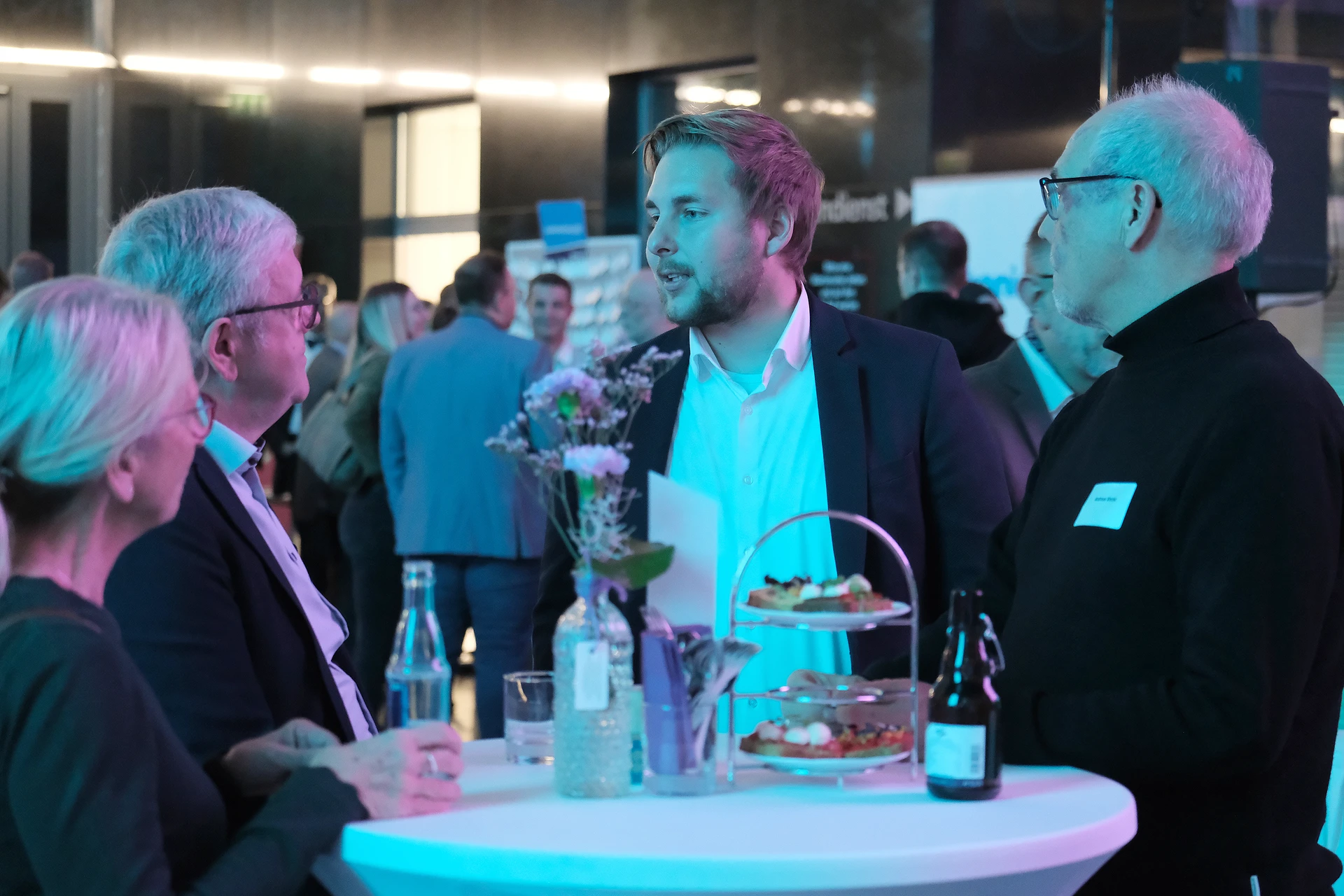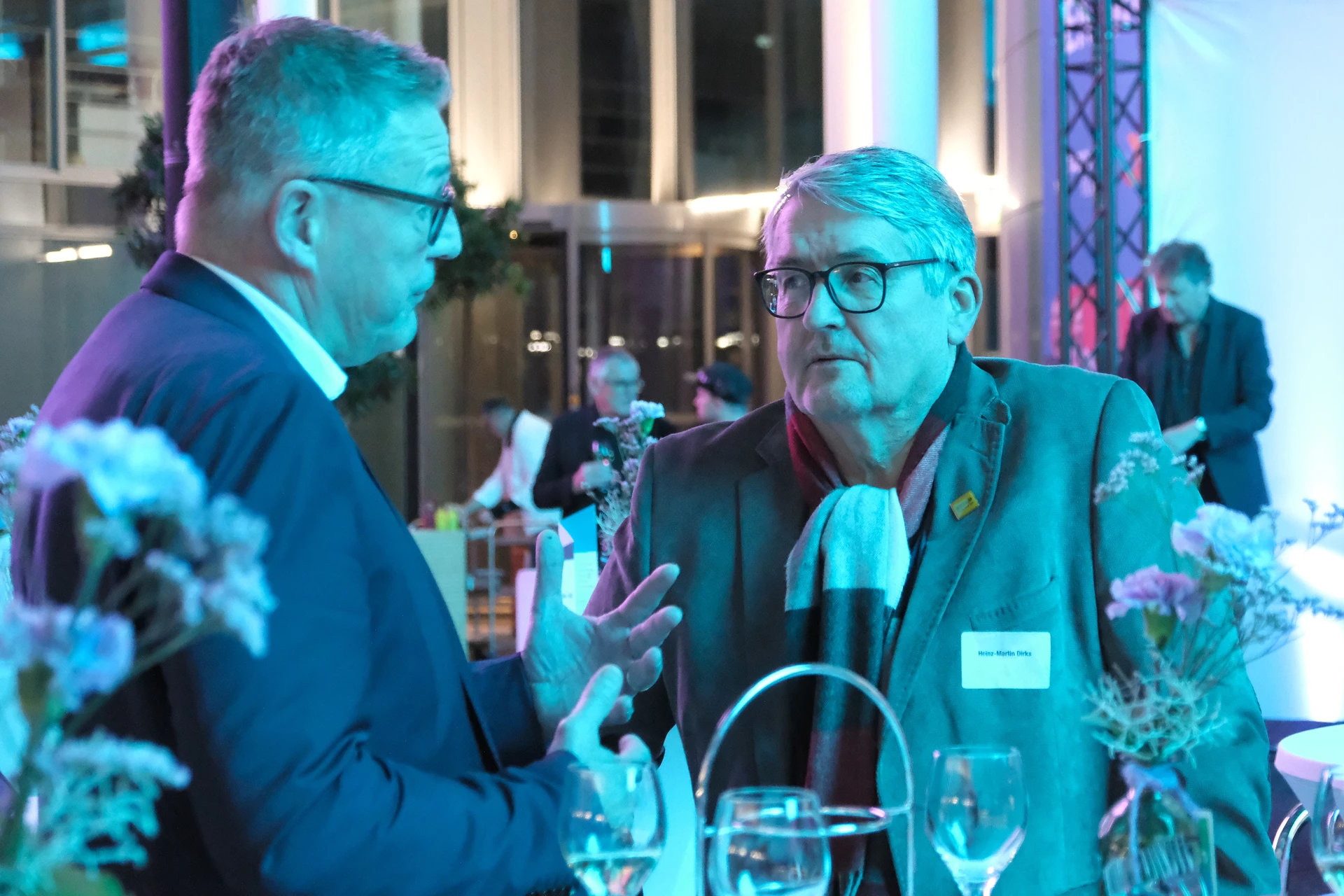 Neben dem Programm auf der Bühne standen Begegnung, Vernetzung und Austausch im Zentrum des agilen Stehempfangs mit mobilem Büfett statt festlich eingedeckter Tische. Die Gäste nutzten fleißig die Gelegenheit zu anregenden Gesprächen. Bei der Schätzfrage, bei der alle Anwesenden tippen konnten, wie viel Kilo Kaffee 2024 über die Catering-Tochter Culina Ruhr bestellt wurden, war Christian Gast mit 7650 Kilo am nächsten dran. 7537 Kilo wäre die richtige Antwort gewesen. Dafür liefert ihm die Floristikabteilung der Werkstatt Constantin-Bewatt ein halbes Jahr lang jede Woche einen Blumenstrauß nach Hause. Mit dem Gewinn will Christian Gast seinen künftigen Ehemann beglücken.