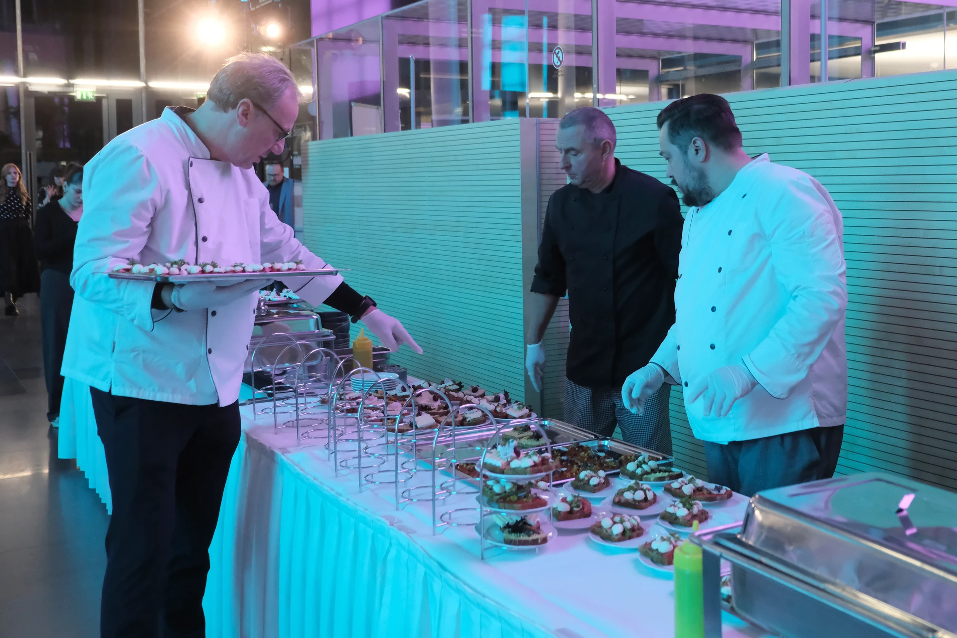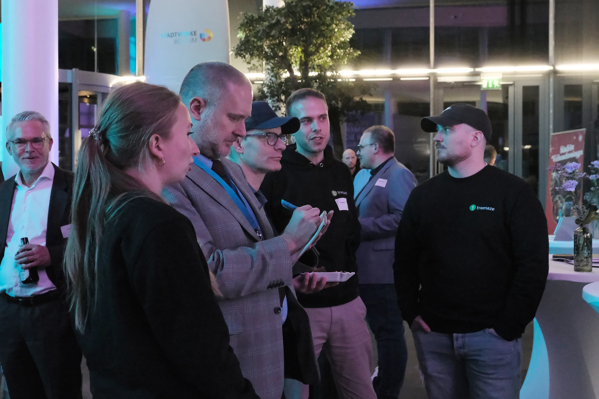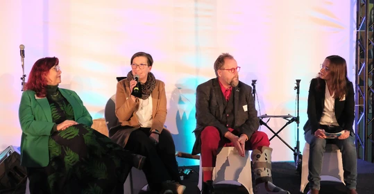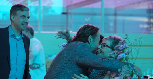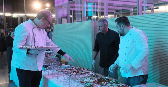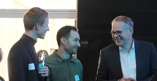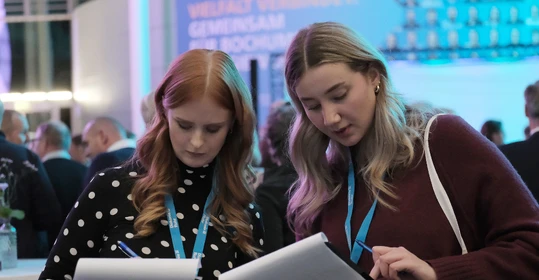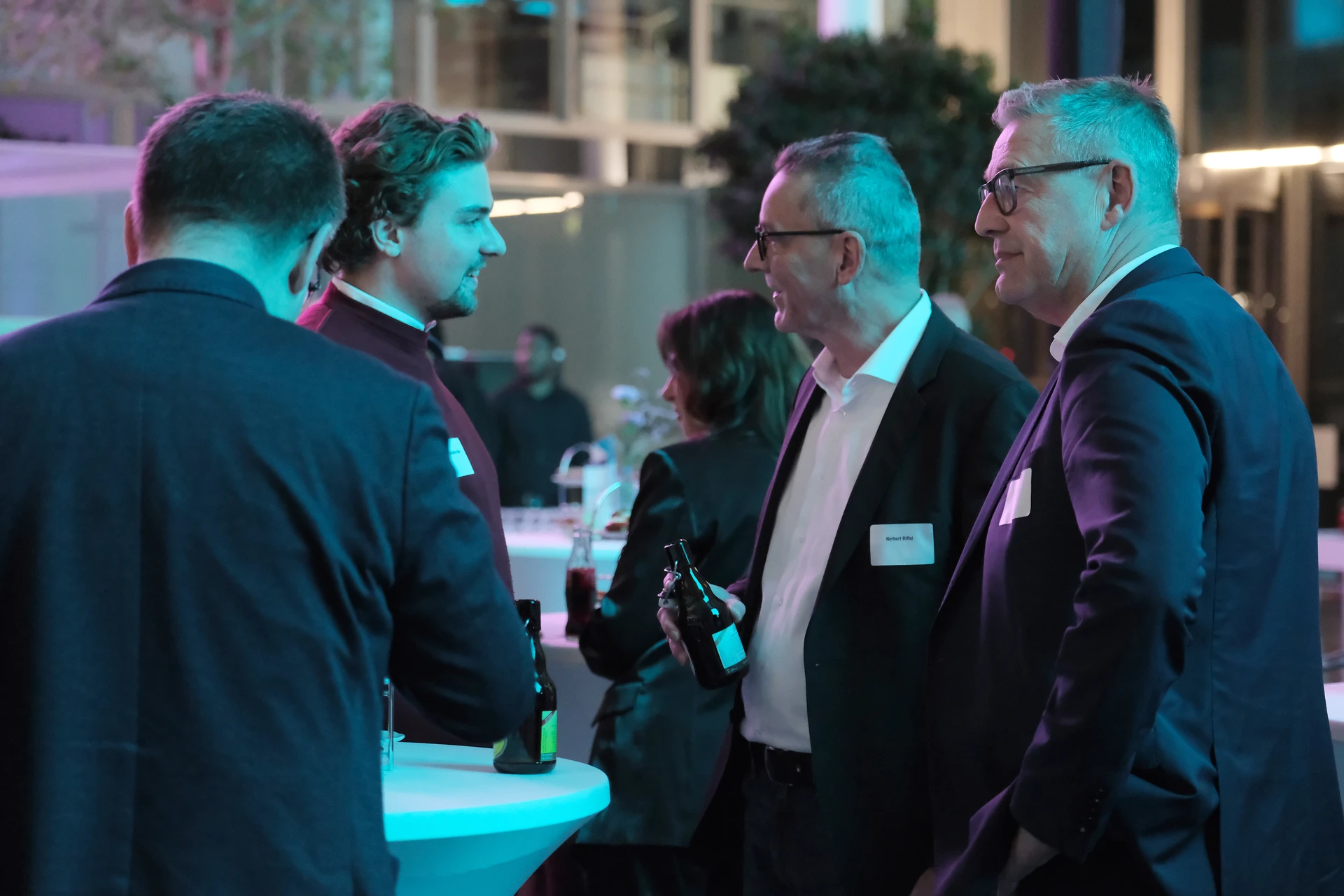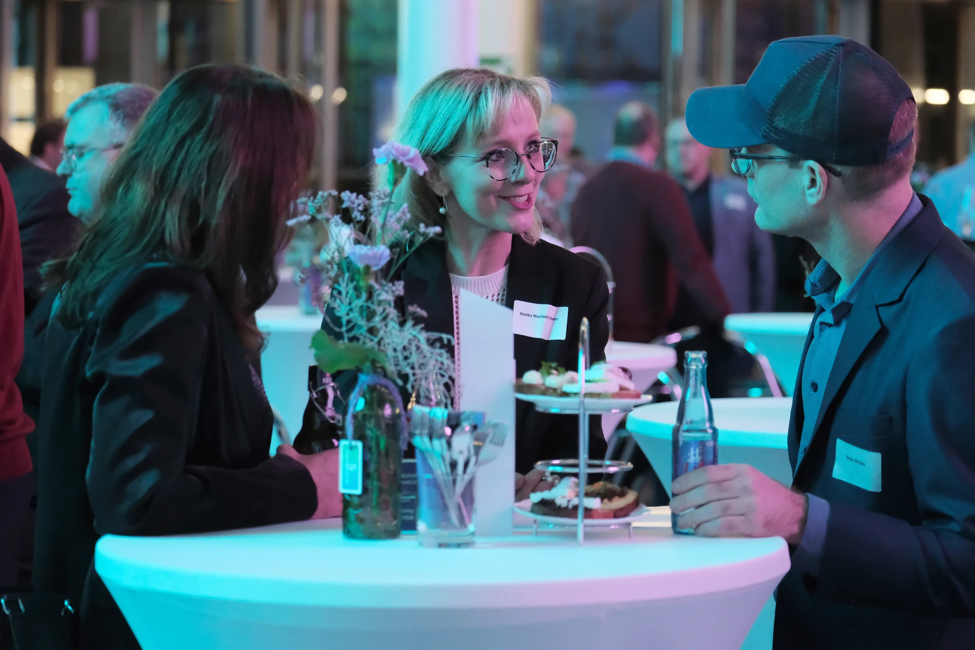 Neben dem Programm auf der Bühne standen Begegnung, Vernetzung und Austausch im Zentrum des agilen Stehempfangs mit mobilem Büfett statt festlich eingedeckter Tische. Die Gäste nutzten fleißig die Gelegenheit zu anregenden Gesprächen. Bei der Schätzfrage, bei der alle Anwesenden tippen konnten, wie viel Kilo Kaffee 2024 über die Catering-Tochter Culina Ruhr bestellt wurden, war Christian Gast mit 7650 Kilo am nächsten dran. 7537 Kilo wäre die richtige Antwort gewesen. Dafür liefert ihm die Floristikabteilung der Werkstatt Constantin-Bewatt ein halbes Jahr lang jede Woche einen Blumenstrauß nach Hause. Mit dem Gewinn will Christian Gast seinen künftigen Ehemann beglücken.