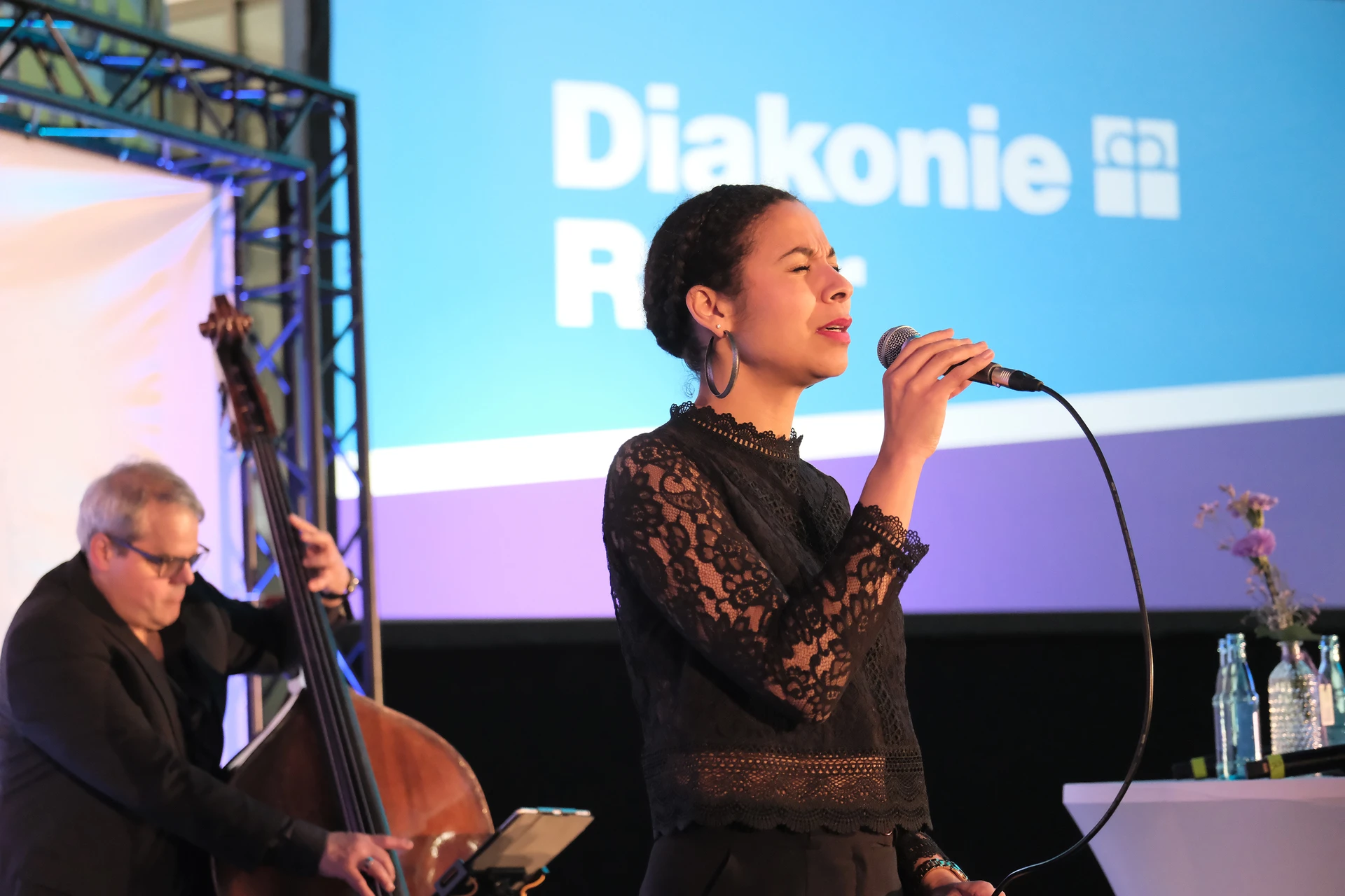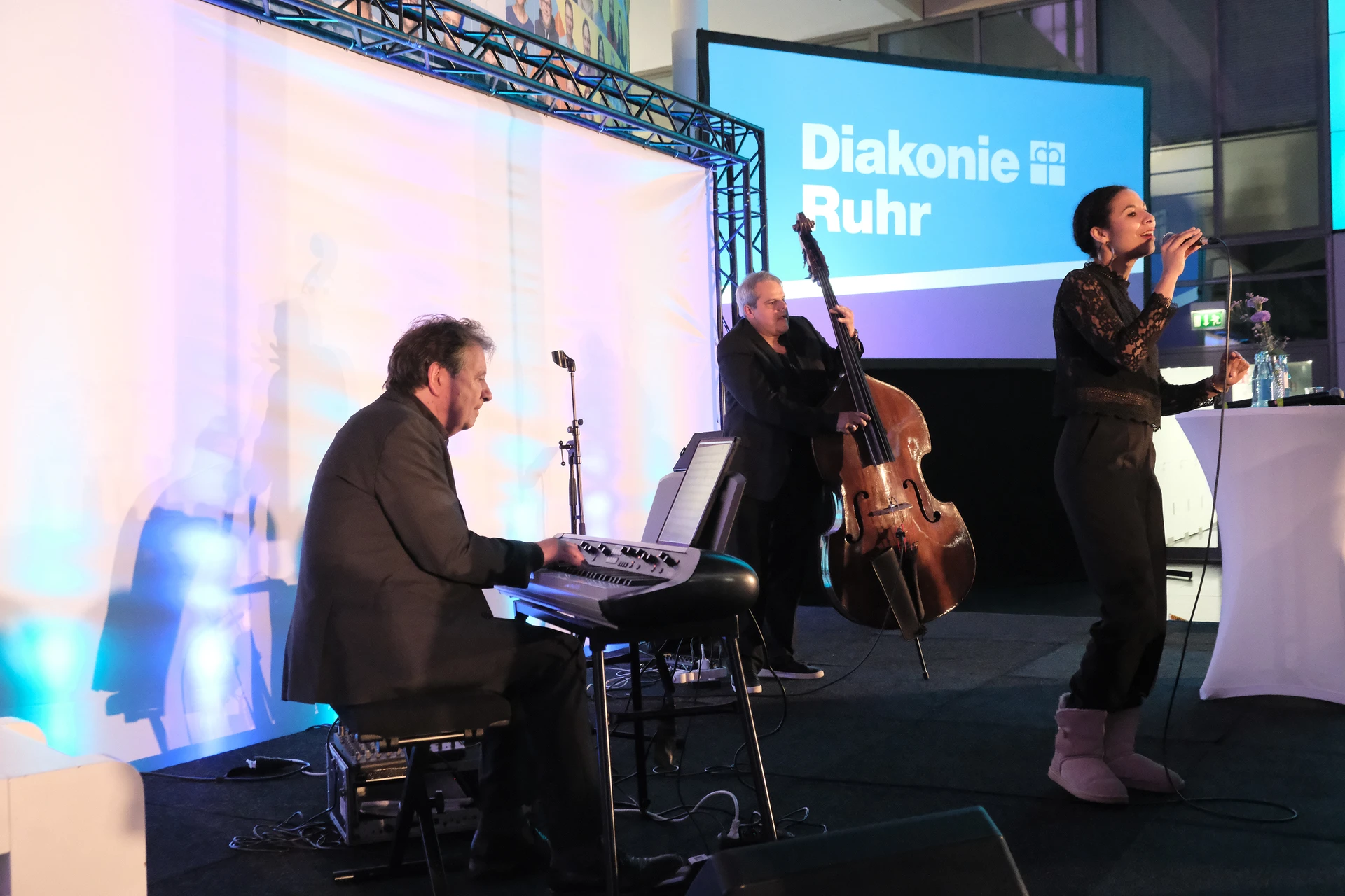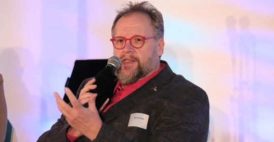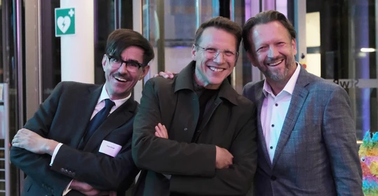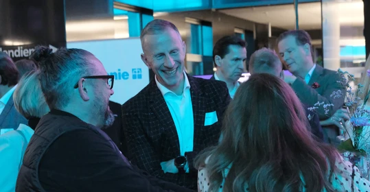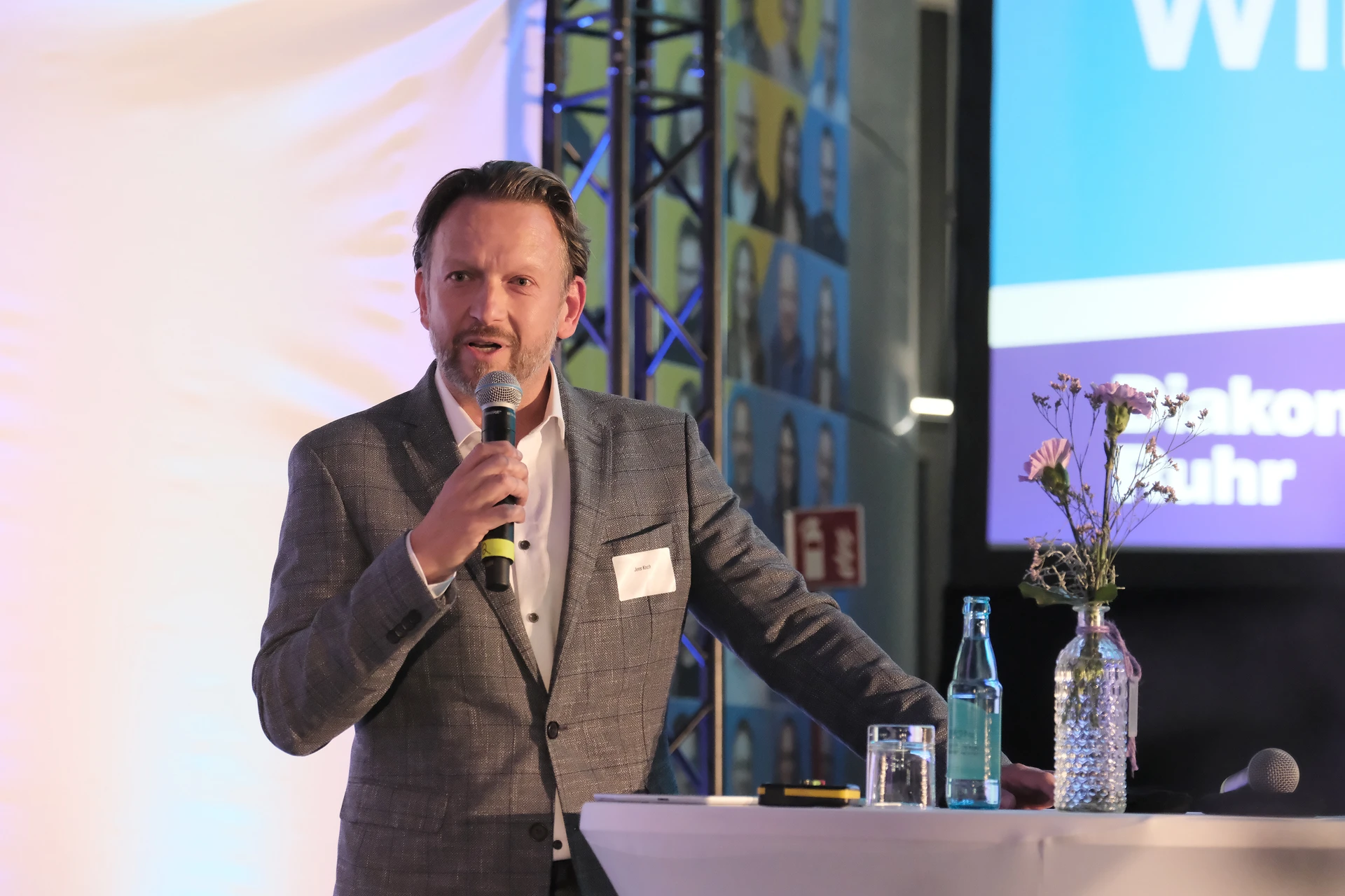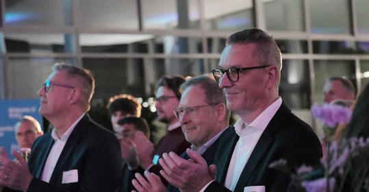 Auch über die vorgestellten Themen hinaus ist seit dem letzten Buß- und Bettagsempfang viel passiert in der Diakonie-Ruhr-Familie. Geschäftsführer Jens Koch, der als Showmaster durch den Abend führte, zählte exemplarisch Einrichtungseröffnungen und -übernahmen, Bauprojekte und neue Produkte auf. Dazu gehörte auch der Wechsel des Hauses am Kesterkamp von der Ev. Stiftung Augusta zur Diakonie Ruhr im Rahmen der Spartenbildung im Evangelischen Verbund Augusta Ruhr (EVA Ruhr). In dem sind die beiden genannten Träger sowie die Ev. Krankenhausgemeinschaft Herne | Castrop-Rauxel und das Diakoniewerk Gelsenkirchen und Wattenscheid seit 2024 zusammengeschlossen. „Wir wachsen als EVA Ruhr weiter zusammen“, betonte Jens Koch als Konzerngeschäftsführer und Sprecher Sozialwirtschaft im EVA Ruhr. „Alles im Sinne unseres Auftrags, dem Dienst am Menschen.“ Was Superintendent Dr. Gerald Hagmann als Aufsichtsratsvorsitzender in seinem Grußwort unterstrich: „Auch in den Krankenhäusern können wir jetzt Menschen in allen Lebenslagen sagen: Was auch passiert. Wir sind da.“
