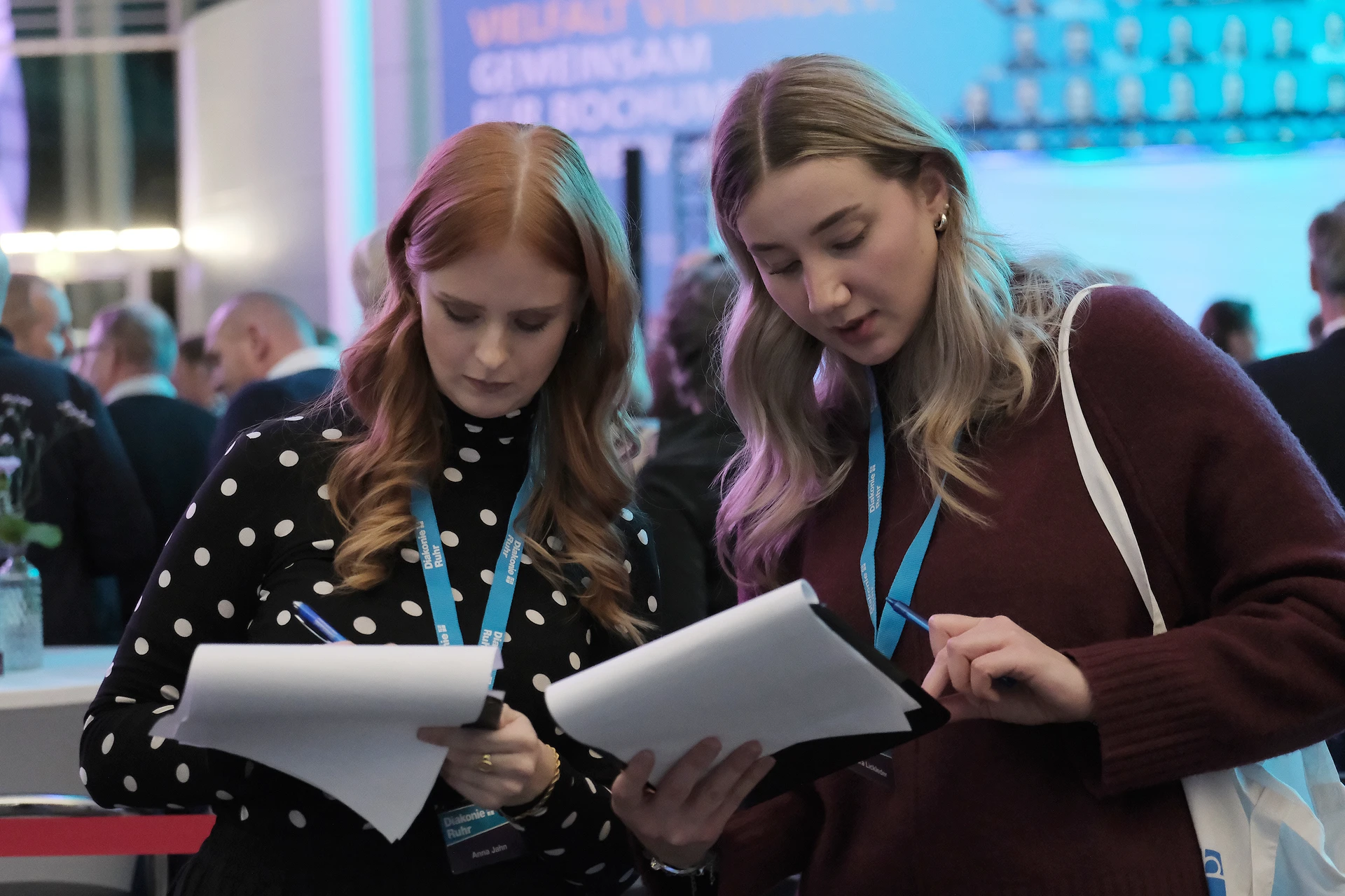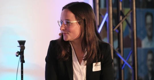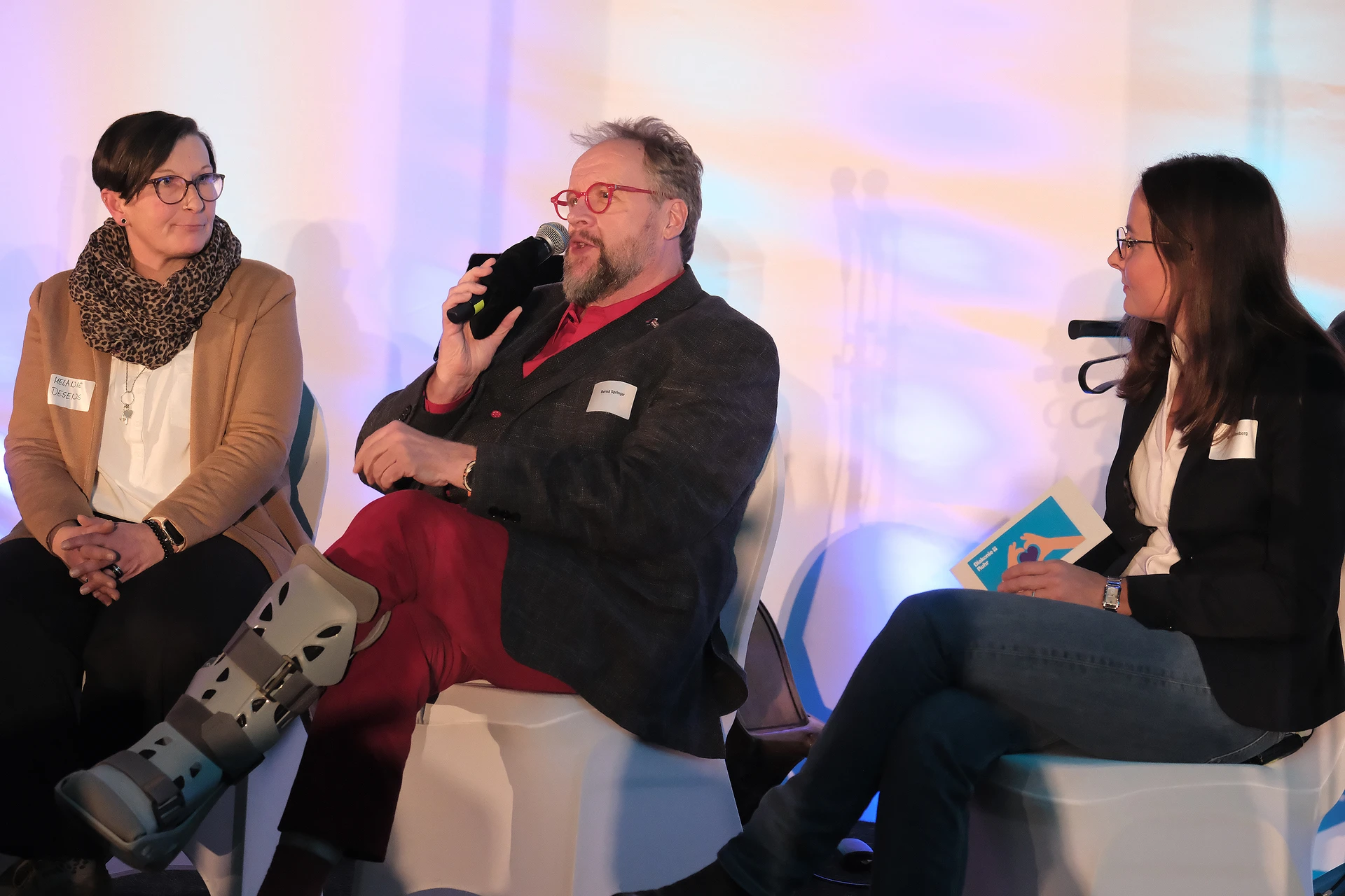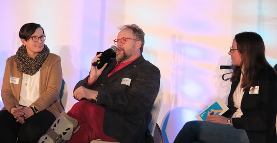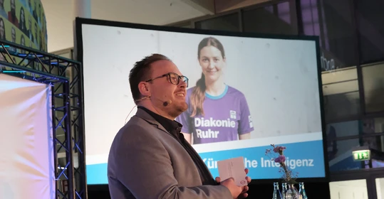 Bennet Fahrmeyer, Referent für Digitalisierung, kündigte eine neue Mitspielerin im Team an – die Künstliche Intelligenz. Im Trikot der Diakonie Ruhr stellte sie sich in einer Videobotschaft kurz vor, die vom Entwicklungspartner Tremaze generiert worden war. Bereits jetzt hilft sie durch Spracherkennung bei der Pflegedokumentation. Künftig könnte sie etwa auch beim Ausfüllen von Formularen und Anträgen unterstützen, die in der Diakonie-Ruhr-App hinterlegt werden. Ein Leitfaden zur Nutzung von Künstlicher Intelligenz verschafft den Mitarbeitenden Orientierung zur sicheren Nutzung von KI im beruflichen Kontext. „Wir haben jetzt ein Toptalent in unseren Reihen“, erklärte Bennet Fahrmeyer. „Aber geben Sie ihr Zeit.“